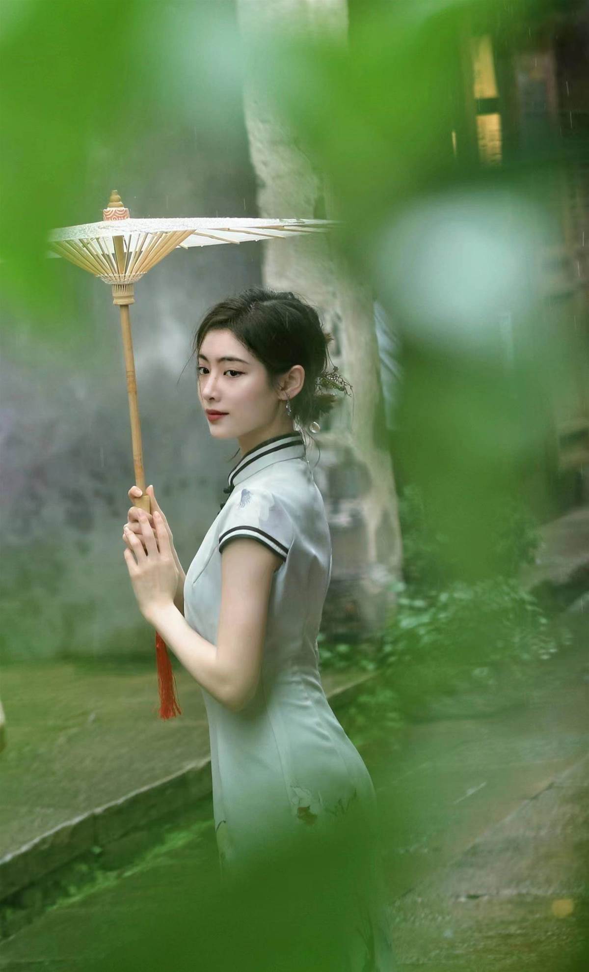 搭配這樣的旗袍裝整個妝容和造型,都要走清婉的路線,把自己打造成如同江南水鄉女子的味道。而許佳琪的髮型也是非常簡單的盤發,只是在后面佩戴了一個發飾,顯得整個人清爽利落,就更有溫柔的氣質了。