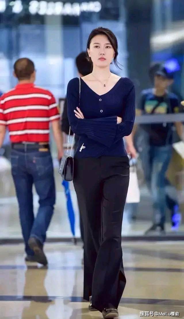 針織開衫是V形領設計,讓姐姐露出了白嫩美頸和迷人的鎖骨。有點喇叭袖口的設計,個性而又不失美感。
