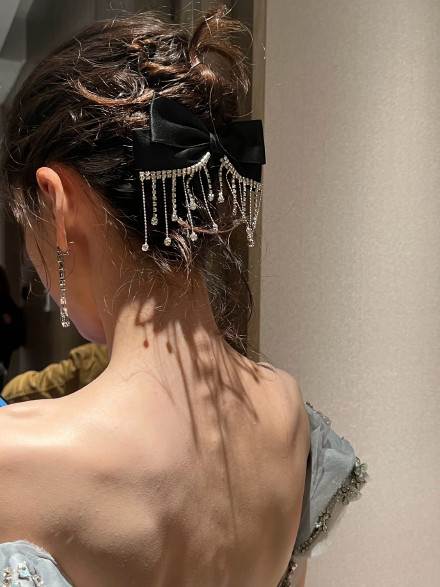 這一襲灰藍色高定禮服,優雅大氣,層層疊疊的裙擺,像雲朵一樣浪漫。露背設計更是性感又迷人。網友紛紛稱讚baby發揮穩定,大晚會從來沒有掉鏈子。