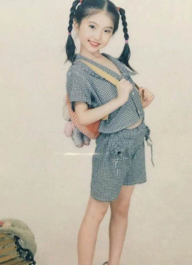 小時候的景甜顏值已經非常高了,大眼睛尖下巴,五官立體清秀,紮著兩根小辮兒,氣質甜美活潑,一看就知道是家裡的掌上明珠。