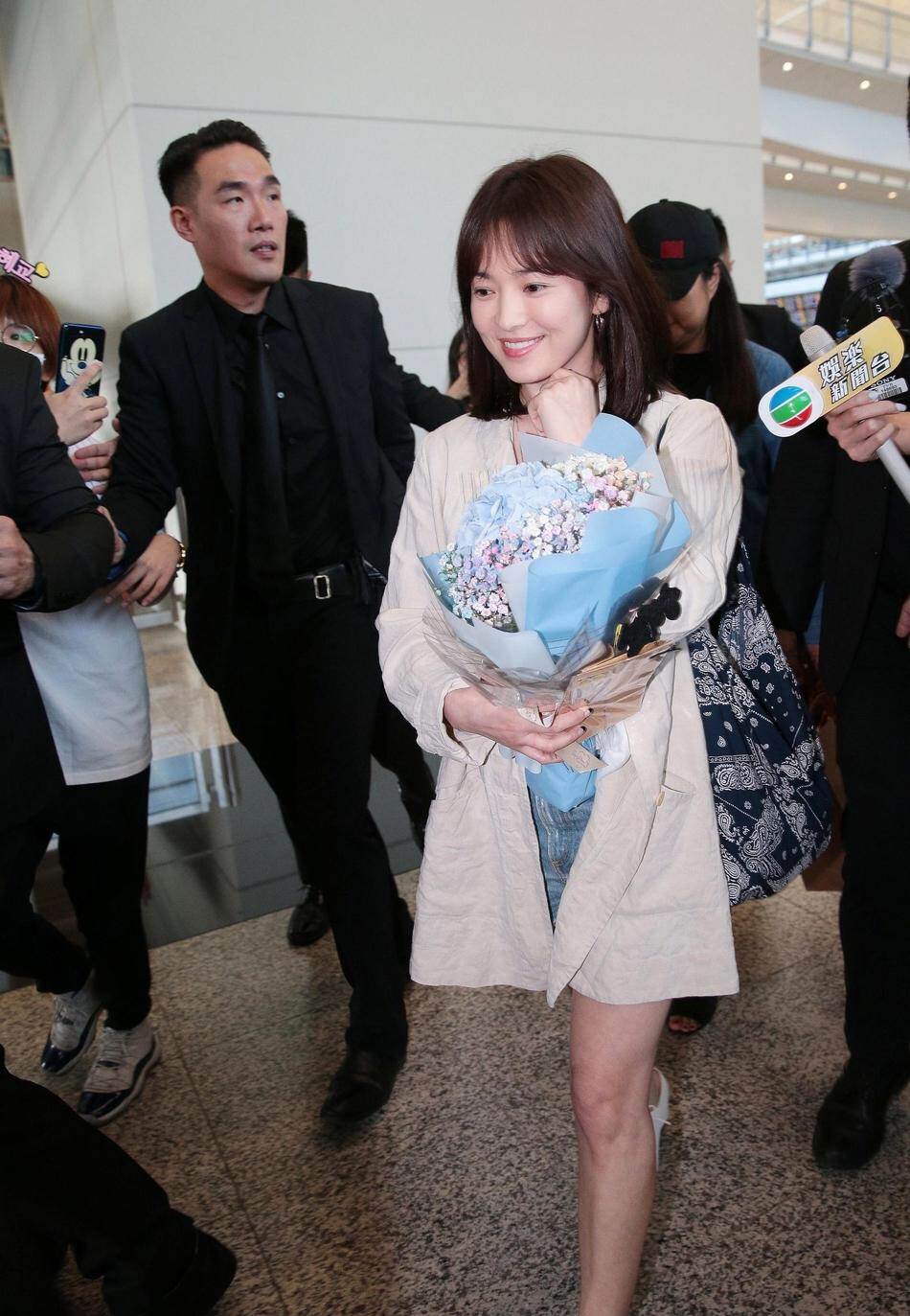 笑容掛在臉上雖然一打扮就跟小女生一樣,在機場的時候,宋慧喬簡單的西裝外套搭配牛仔短褲,八字劉海的齊肩短髮,配上甜甜的笑容就好像十八歲的小姑娘一樣。