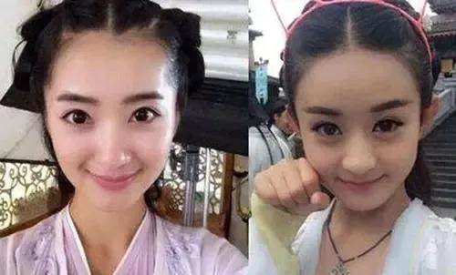 章子怡出道多年,一直大紅大紫,年輕時更是好萊塢首屈一指的中國女星,是當之無愧的四大花旦。我們從下圖看到,她的替身在濃妝的襯托下,五官比國際章稍顯大氣,不夠精致。