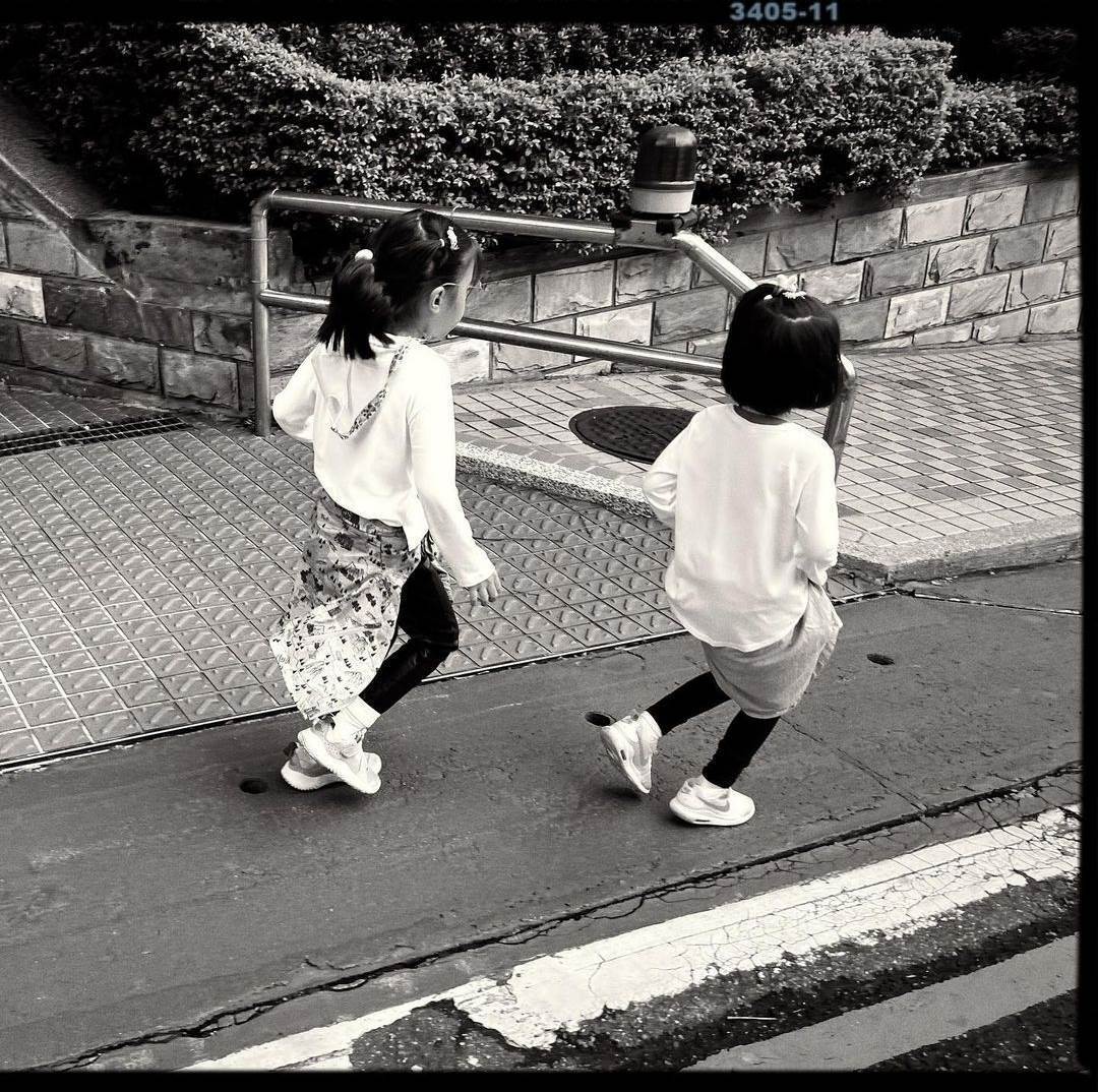 當日,咘咘波妞穿著運動裝,戴著口罩,手牽著手同行姐妹關係融洽。咘咘因為先天弱視,戴著厚厚的鏡片,波妞剪了齊肩發,發量驚人,估計羡慕的人有不少。波妞蹦蹦跳跳完全就是活力少女,而咘咘顯得相對比較穩重。