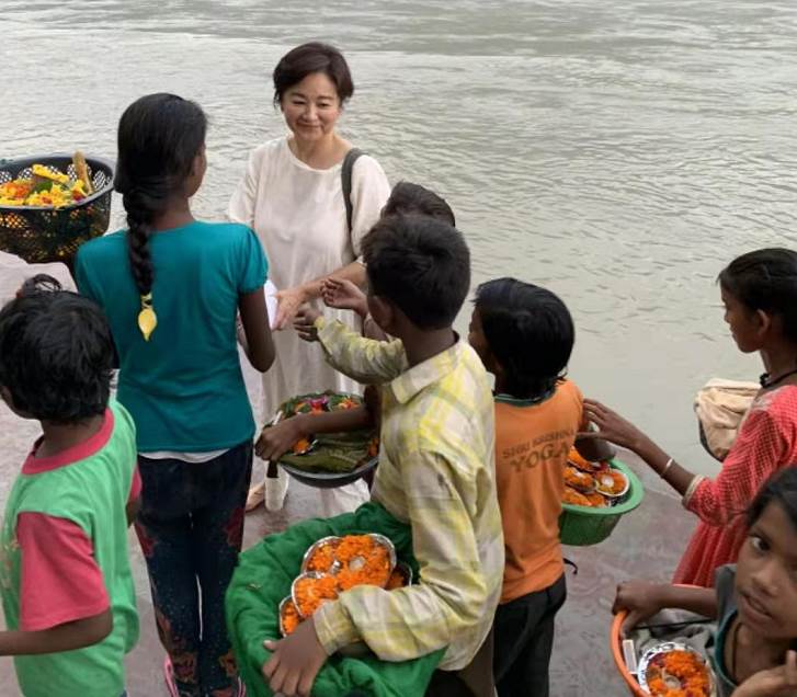 清爽幹練的短髮造型顯得非常有女人味,身上只穿著一件基礎款的小圓領白色連衣裙,寬鬆的剪裁非常有居家的風格,能夠確保非常優越的舒適度,背著的墨綠色包包,是整套造型中最大的亮點,很好的跟白色結合在一起,讓色彩顯得沒有那麼單調,但同時也不會張揚,很符合林青霞一貫的低調作風,站在人群中跟孩子們交流的時候,林青霞一點明星架子也沒有,真的是太溫柔了。