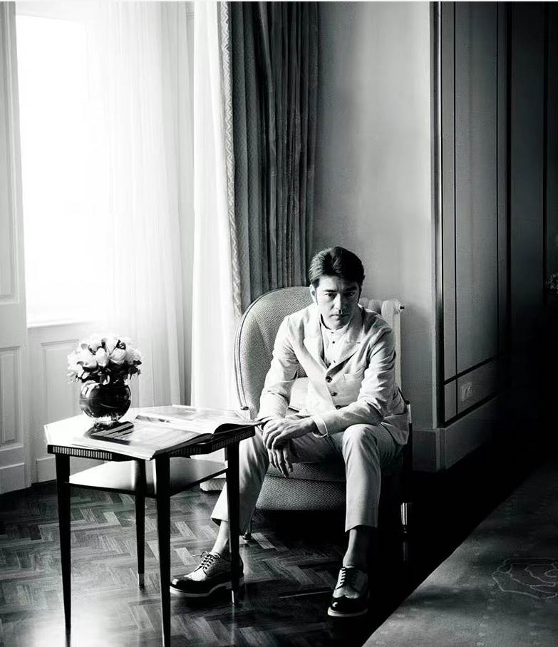 金城武身上的這一套西裝搭配就是如此,不過在進行組合時,內搭的白色襯衫,特意將領口敞開,顯得沒有那麼刻板嚴肅,使得整個造型立刻多了幾分隨性不羈感。