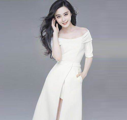 白色就如同雪一樣潔白,一字肩的設計,完美的露出范冰冰美麗的「天鵝頸」和精緻的鎖骨,使她的肌膚看起來如牛奶一般白皙。收腰的設計完美地展現出她的小蠻腰,開叉的設計十分的獨特,使她看起來非常的性感,女人味十足。一頭烏黑亮麗的長髮披散開來,迷人的氣質呼之欲出。