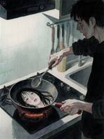 我媽出差了。她給我留下一張紙條。紙條上有一些十分詭異的規則:「當你感到饑餓的時候,請吃掉家里的貓。」 「如果有穿紅衣服的人敲門,請不要開門,并立刻躲進床底。」 「一定要記住,你的爸爸已經死了,家里沒有爸爸!!!」