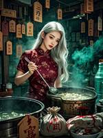 太奶活了一百歲,卻依舊年輕貌美,艷麗動人。 她開了家遠近聞名的餛飩鋪,號稱「男人的加油站,女人的美容院」。 一碗餛飩十萬塊,卻依舊供不應求。 所有吃過餛飩的人,都對太奶的手藝贊不絕口。 無數商家競相模仿,卻都學不出太奶的精髓。 他們都不知道,太奶的餛飩不重做法,而重材料。 可我卻從沒見過太奶進貨。 只有母親的房中,夜夜傳來歡暢的低吟。