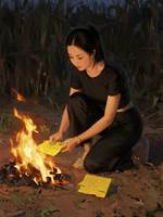 「中元節,給祖宗們燒紙,千萬記得要在地上先畫個圈。」 「為什麼?」 「鬼門大開,⼈鬼以紙錢互通,以圈為界,惡鬼不侵。」 「要是沒有畫圈呢?」