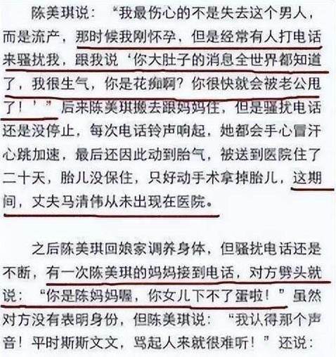 網上最為流傳的消息,就是有孕在身的陳美琪,接到關之琳打來的電話后,氣得一度小產,陳美琪與馬清偉結婚多年好不容易懷的孩子,卻在關之琳一次次的威脅下流產。