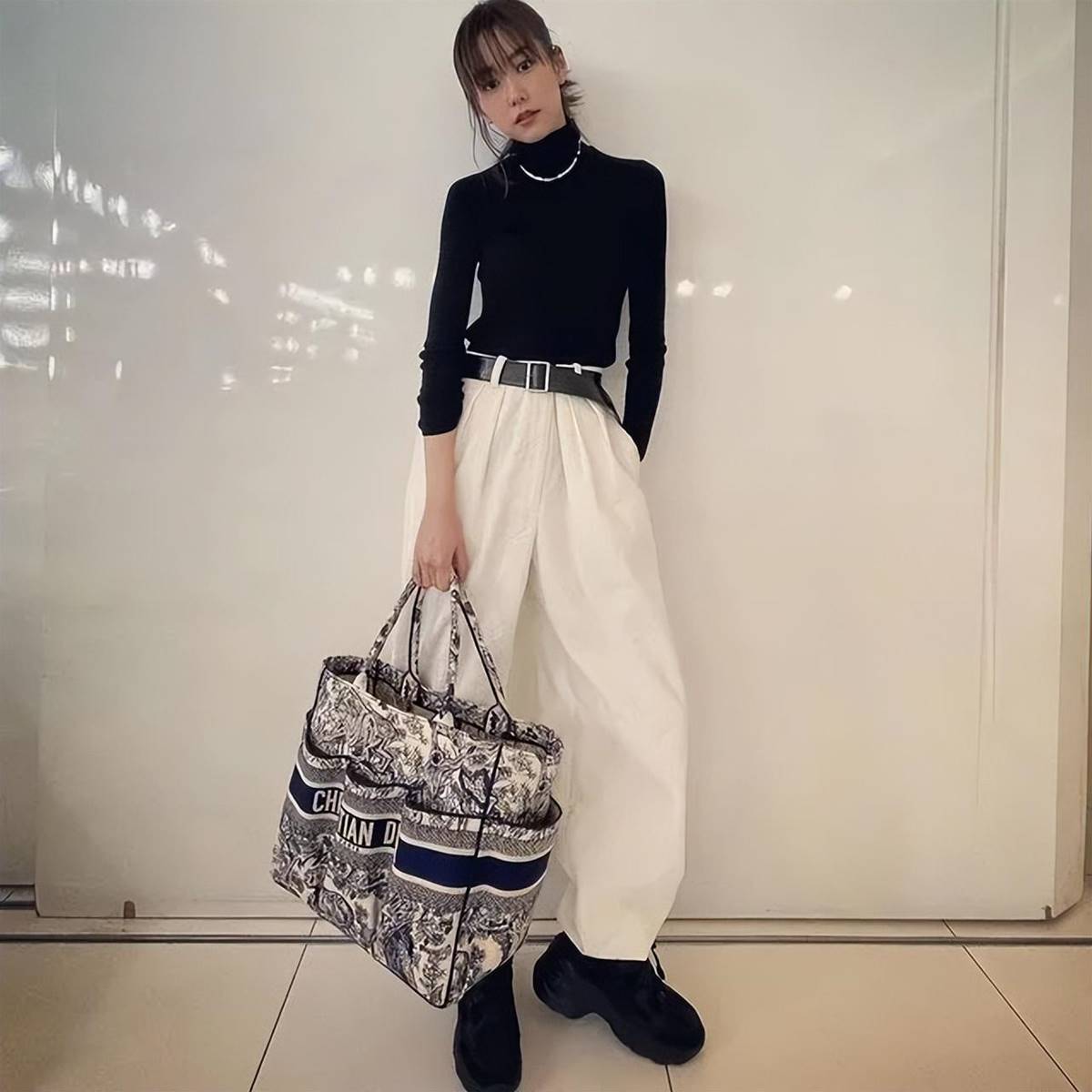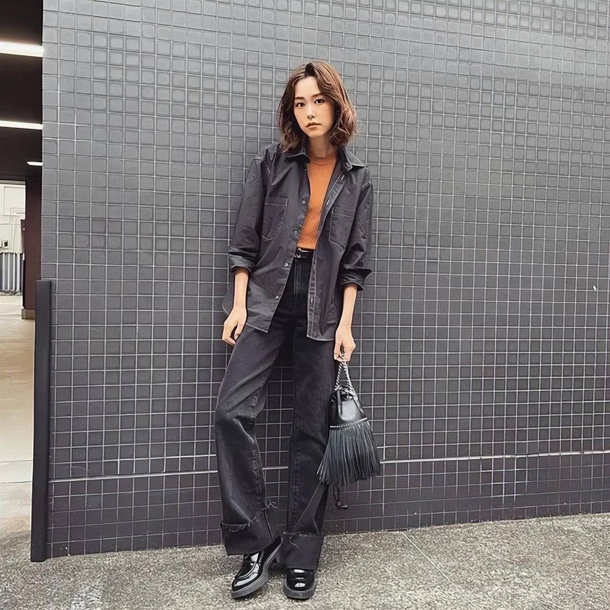 桐谷真的好喜歡黑色,全黑的穿搭因為本身顯得壓抑沉悶,就可以大膽嘗試彩色內搭和彩色包包,打破黑色的平靜又很有亮點。