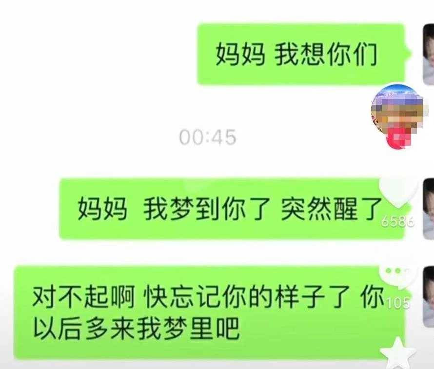 如果妳看到下面這段,估計會哭出來:「媽媽,我夢到妳了,突然醒了,對不起啊,快忘記妳的樣子了,妳以後對來我夢里吧。」