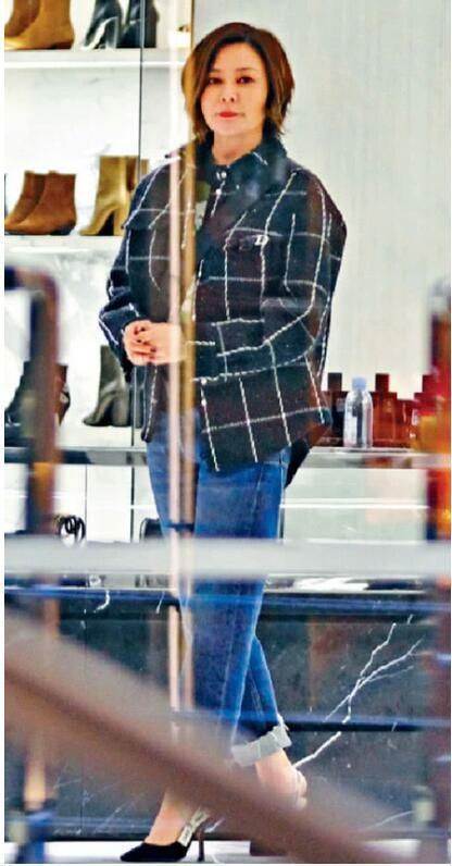 出去在外面的時候,很多人都會拿著手機抓拍,這個時候她上半身穿著一件黑色的格子的外套,穿在身上的話,感覺顯得肩膀那裡稍微有一點腫,下面也是套了一條牛仔褲,而且牛仔褲的長度也是比較短的。
