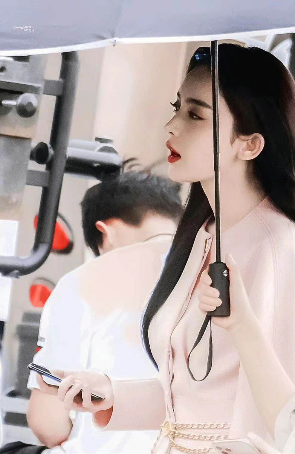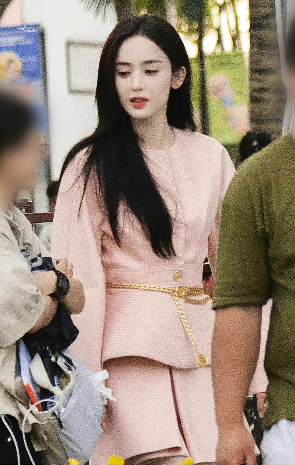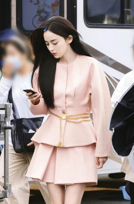 所以從她們的穿搭上,是有非常多值得借鑒的點可供我們學習的。娜扎的這套粉色呢子蛋糕裙,就極大展現了她身材的優勢。