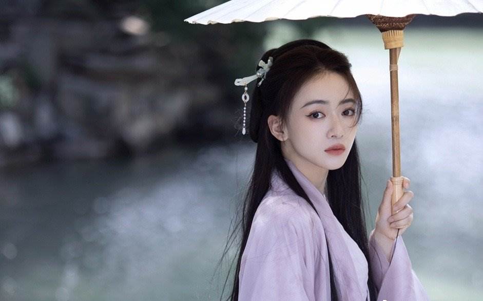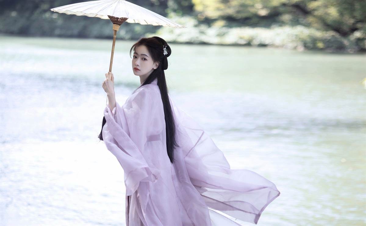 吳謹言身上穿著的淡紫色「漢服」,使得她看起來就宛如一朵優雅又溫柔的丁香花一般。