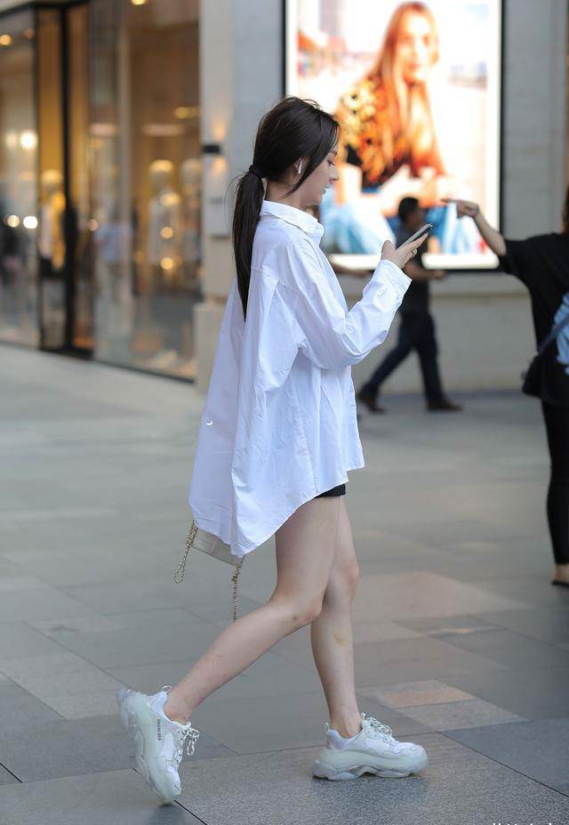 運動鞋真的很百搭了,一件白色襯衣,這種男友力的襯衣和一雙運動鞋搭配起來,依然妖嬈吸睛。